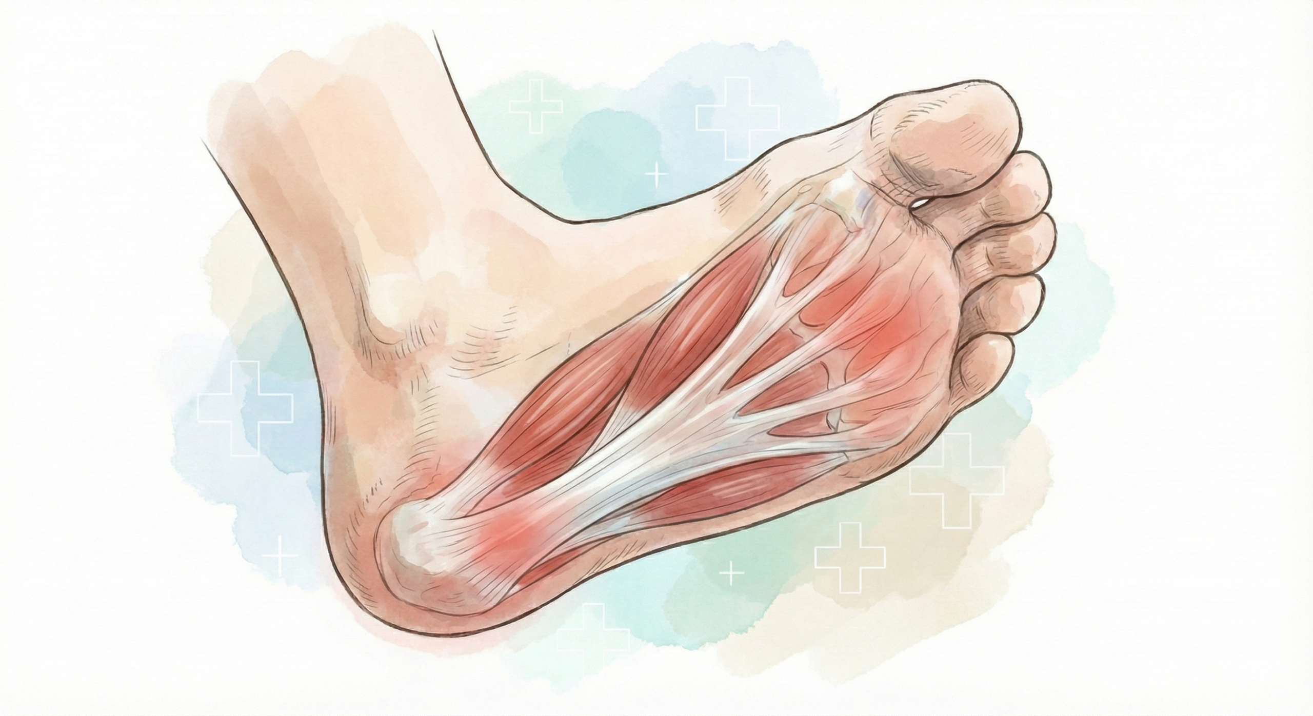 足底腱膜をサポートし、炎症部位の負担を抑えます。