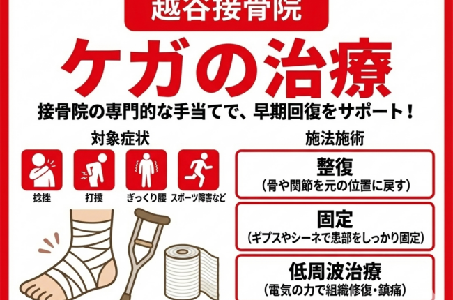<blockquote class="wp-embedded-content" data-secret="9Rf80XzC6Z"><a href="https://koshigaya-waka.com/service/%e3%82%b1%e3%82%ac%e3%81%ae%e6%b2%bb%e7%99%82%e3%80%80repair%e3%80%80/">Repair ケガの治療 </a></blockquote><iframe sandbox="allow-scripts" security="restricted" src="https://koshigaya-waka.com/service/%e3%82%b1%e3%82%ac%e3%81%ae%e6%b2%bb%e7%99%82%e3%80%80repair%e3%80%80/embed/#?secret=9Rf80XzC6Z" width="600" height="400" title="“Repair ケガの治療 ” — 越谷接骨院" data-secret="9Rf80XzC6Z" frameborder="0" marginwidth="0" marginheight="0" scrolling="no" class="wp-embedded-content"></iframe><script type="text/javascript"> /* <![CDATA[ */ /*! This file is auto-generated */ !function(d,l){"use strict";l.querySelector&&d.addEventListener&&"undefined"!=typeof URL&&(d.wp=d.wp||{},d.wp.receiveEmbedMessage||(d.wp.receiveEmbedMessage=function(e){var t=e.data;if((t||t.secret||t.message||t.value)&&!/[^a-zA-Z0-9]/.test(t.secret)){for(var s,r,n,a=l.querySelectorAll('iframe[data-secret="'+t.secret+'"]'),o=l.querySelectorAll('blockquote[data-secret="'+t.secret+'"]'),c=new RegExp("^https?:$","i"),i=0;i<o.length;i++)o[i].style.display="none";for(i=0;i<a.length;i++)s=a[i],e.source===s.contentWindow&&(s.removeAttribute("style"),"height"===t.message?(1e3<(r=parseInt(t.value,10))?r=1e3:~~r<200&&(r=200),s.height=r):"link"===t.message&&(r=new URL(s.getAttribute("src")),n=new URL(t.value),c.test(n.protocol))&&n.host===r.host&&l.activeElement===s&&(d.top.location.href=t.value))}},d.addEventListener("message",d.wp.receiveEmbedMessage,!1),l.addEventListener("DOMContentLoaded",function(){for(var e,t,s=l.querySelectorAll("iframe.wp-embedded-content"),r=0;r<s.length;r++)(t=(e=s[r]).getAttribute("data-secret"))||(t=Math.random().toString(36).substring(2,12),e.src+="#?secret="+t,e.setAttribute("data-secret",t)),e.contentWindow.postMessage({message:"ready",secret:t},"*")},!1)))}(window,document); //# sourceURL=https://koshigaya-waka.com/wp-includes/js/wp-embed.min.js /* ]]> */ </script>